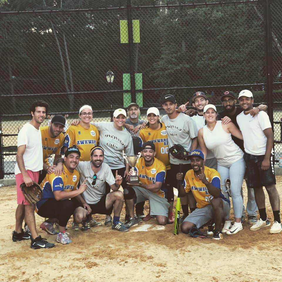 The 2019 Awkward team had one of the greatest seasons in LMSL history. They won 23 and lost 2, and allowed only 59 runs over 25 games. At one point they won 19 consecutive games, the last 15 of the regular season plus the first 2 rounds of playoffs. They faced the Ball Busters in the final, who were attempting to win an unprecedented 4th straight title, and almost did, before Awkward’s pitching and defense asserted itself in games 2 and 3.